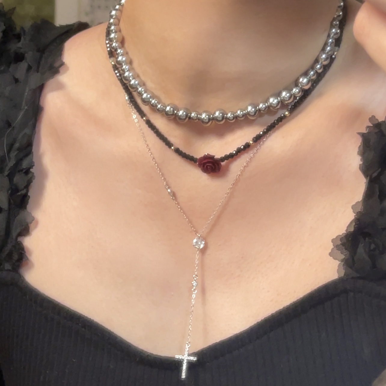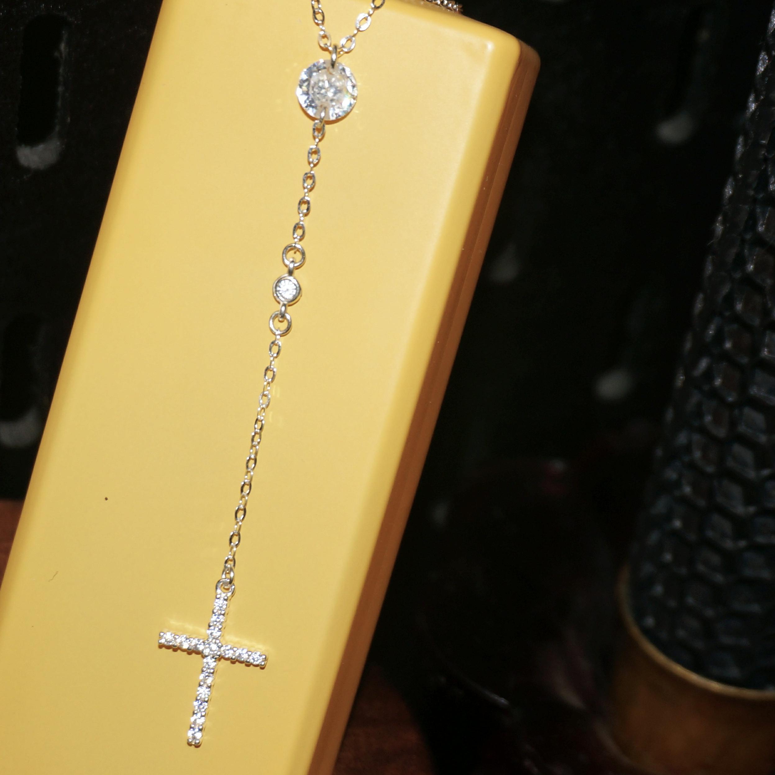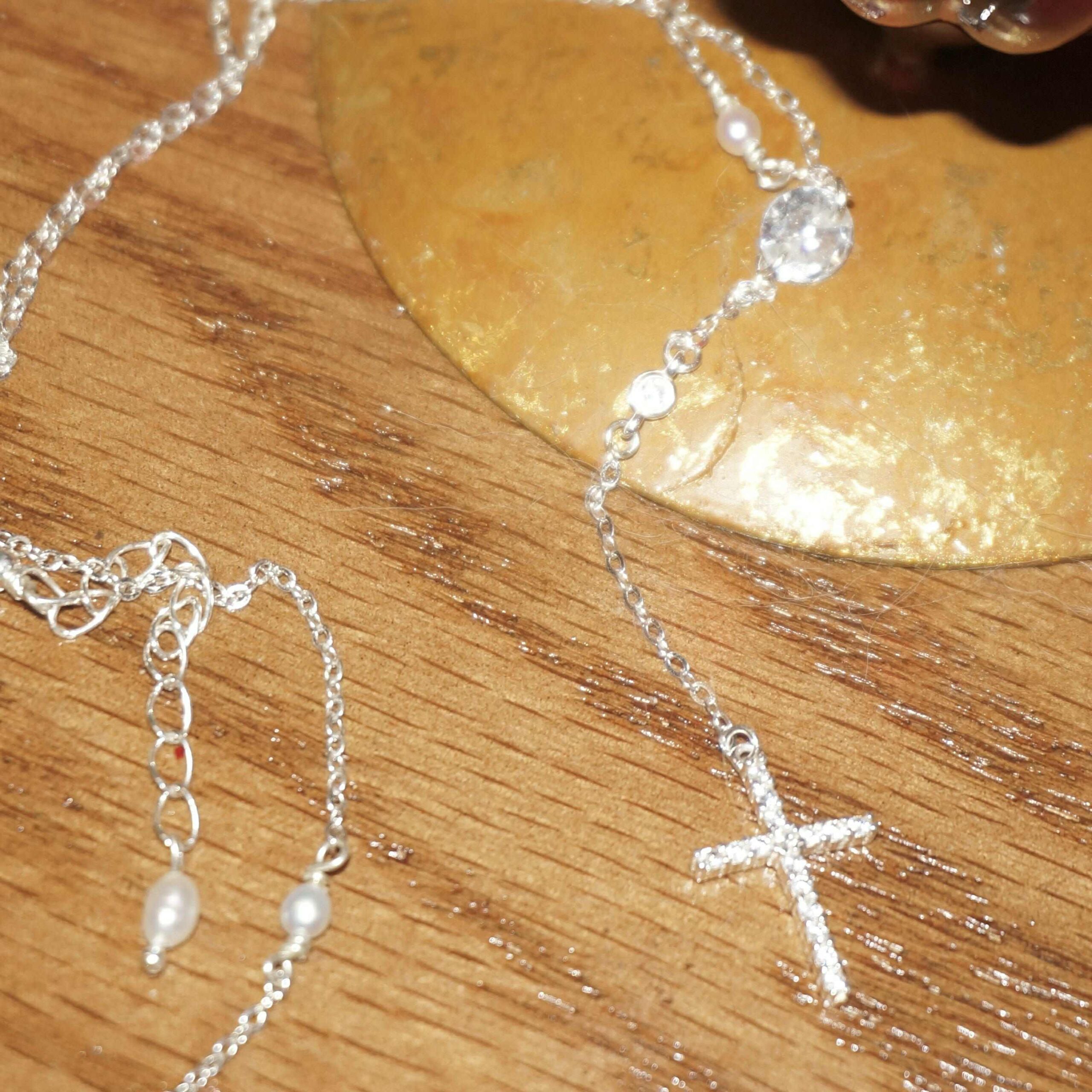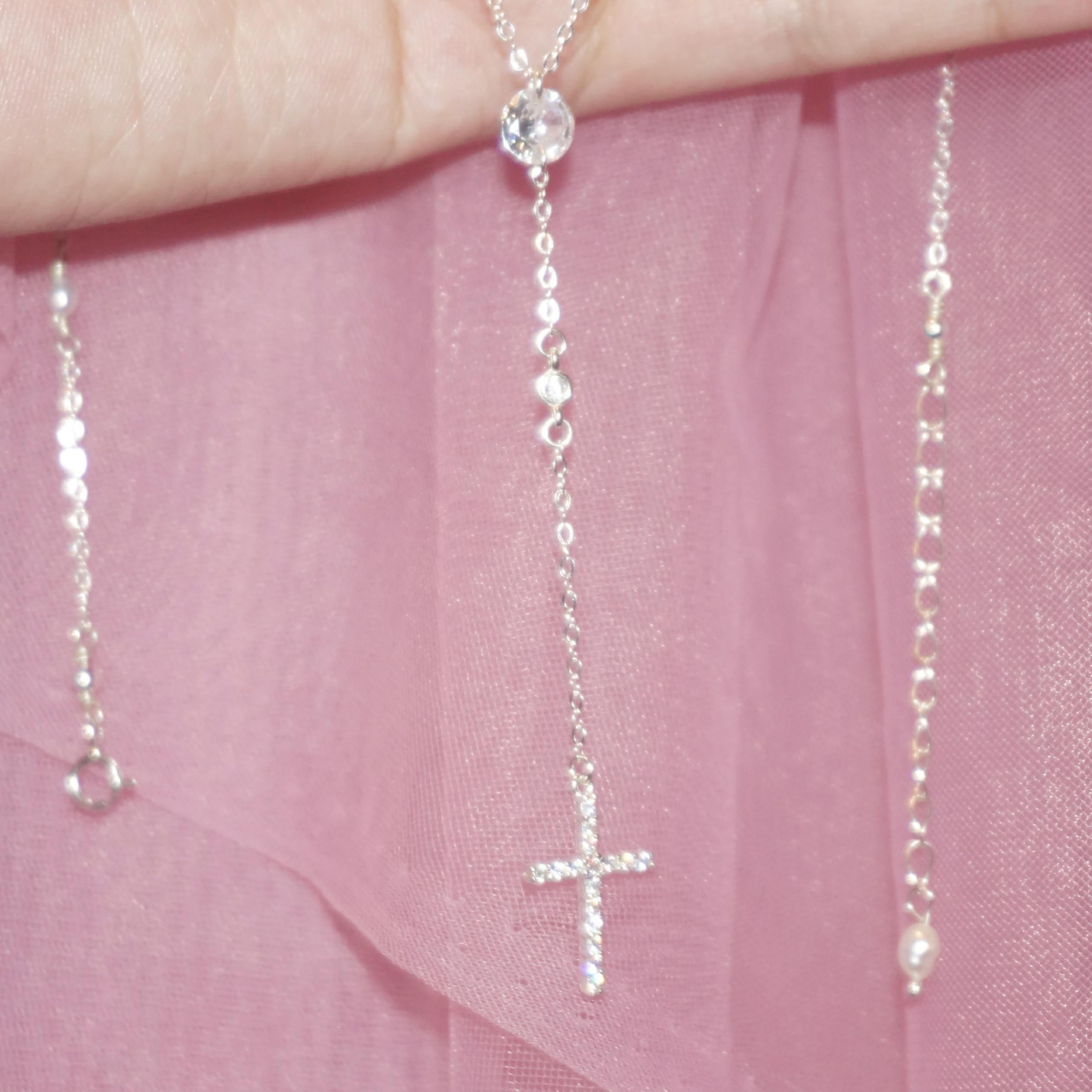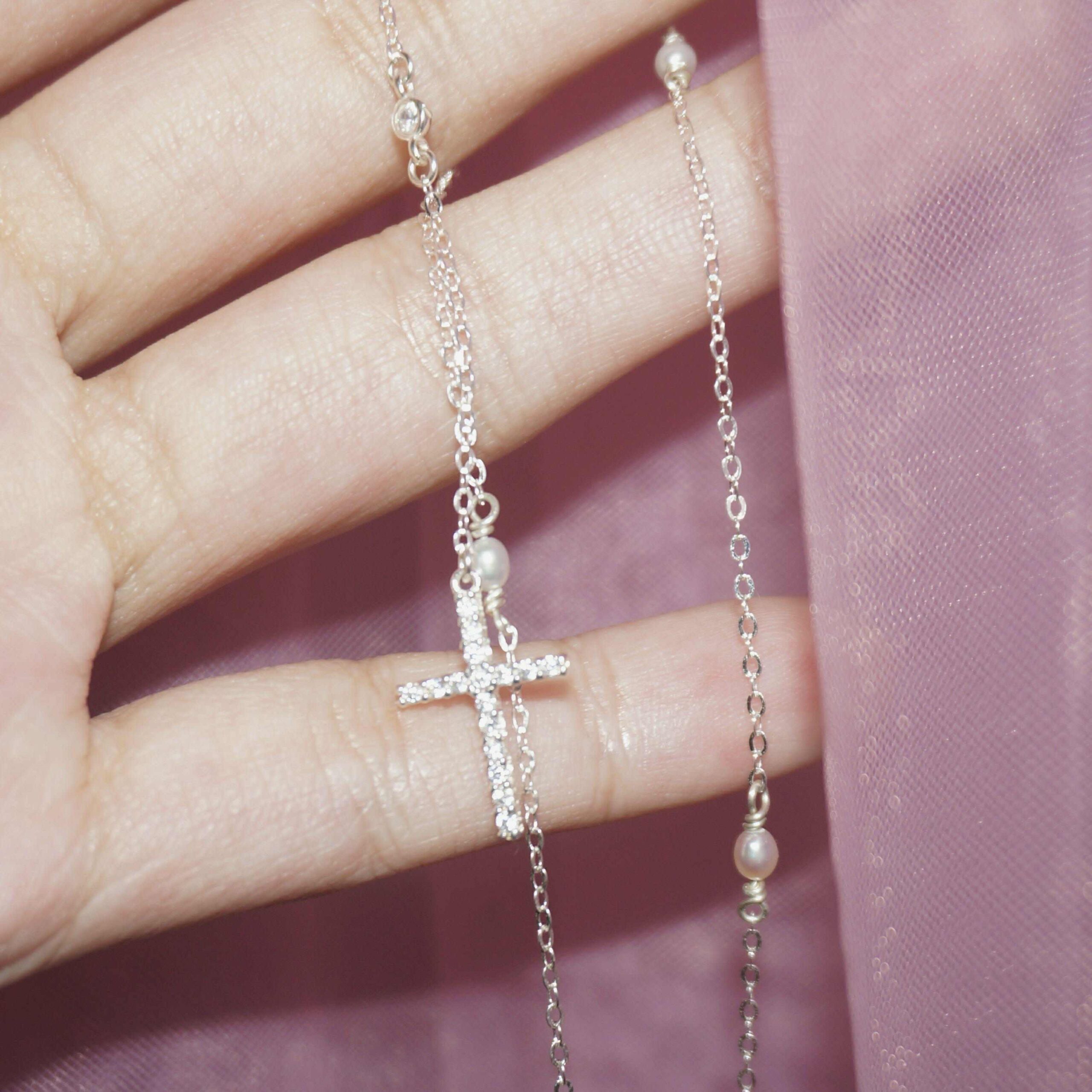Charming Sterling Silver SAINT LIORA Pearl Cross Necklace